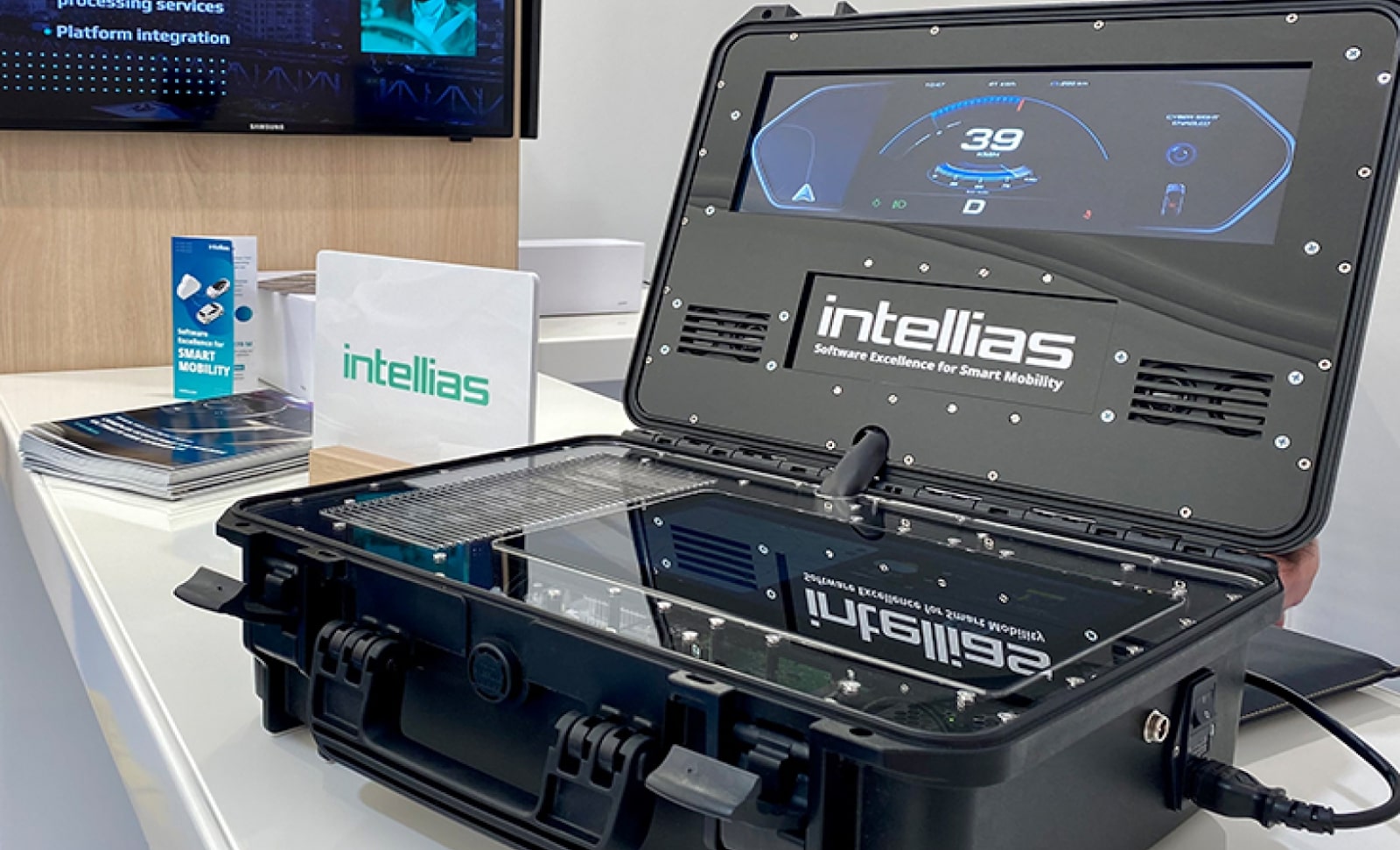 Intellias is an expert in mobility, and we managed to combine our expertise and the expertise of our partners to showcase advanced technological solutions for the automotive future. With this portable automotive kit, we can exhibit our multiple-layer skills and capabilities in terms of creating cutting-edge digital cockpits for electric vehicles. The digital cockpit has a number of features and system notifications that display the status of a car. We give other automotive companies and drivers a chance to have a real-life experience of interacting with different vehicle systems